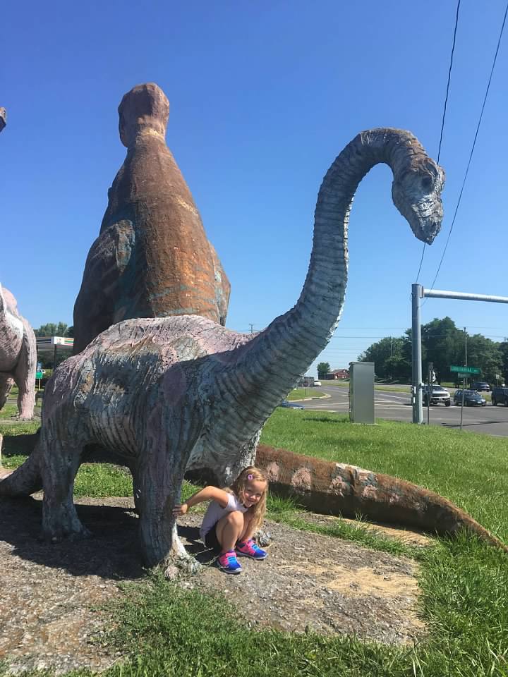 The drive from Frederick County, MD offers a beautiful view of the Blue Ridge Mountains, eventually arriving arrive at the intersection for a roadside attraction called Dinosaur Land in White Post, VA. We didn’t have any dinosaur lovers in our group that day so we didn’t opt to stop, but we did take a few photos. It’s hard to pass up the opportunity for a photo with a dinosaur.