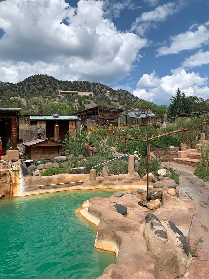 | Jemez Hot Springs, Jemez Springs, NM | Jemez Springs | Rental Car | 2:10PM | 2:30PM | We had never soaked in a hot spring before and driving 50 minutes out of the way gave us a reason to see more of New Mexico. Jemez Springs is a small mountain town. Bring your bathing suit and a towel to try a natural soak in this beautiful area. The Jemez Monument is nearby, a ruin of a mission built in the 1600s. A restored Kiva allows visitors to view the churches native to the people of Jemez. | |