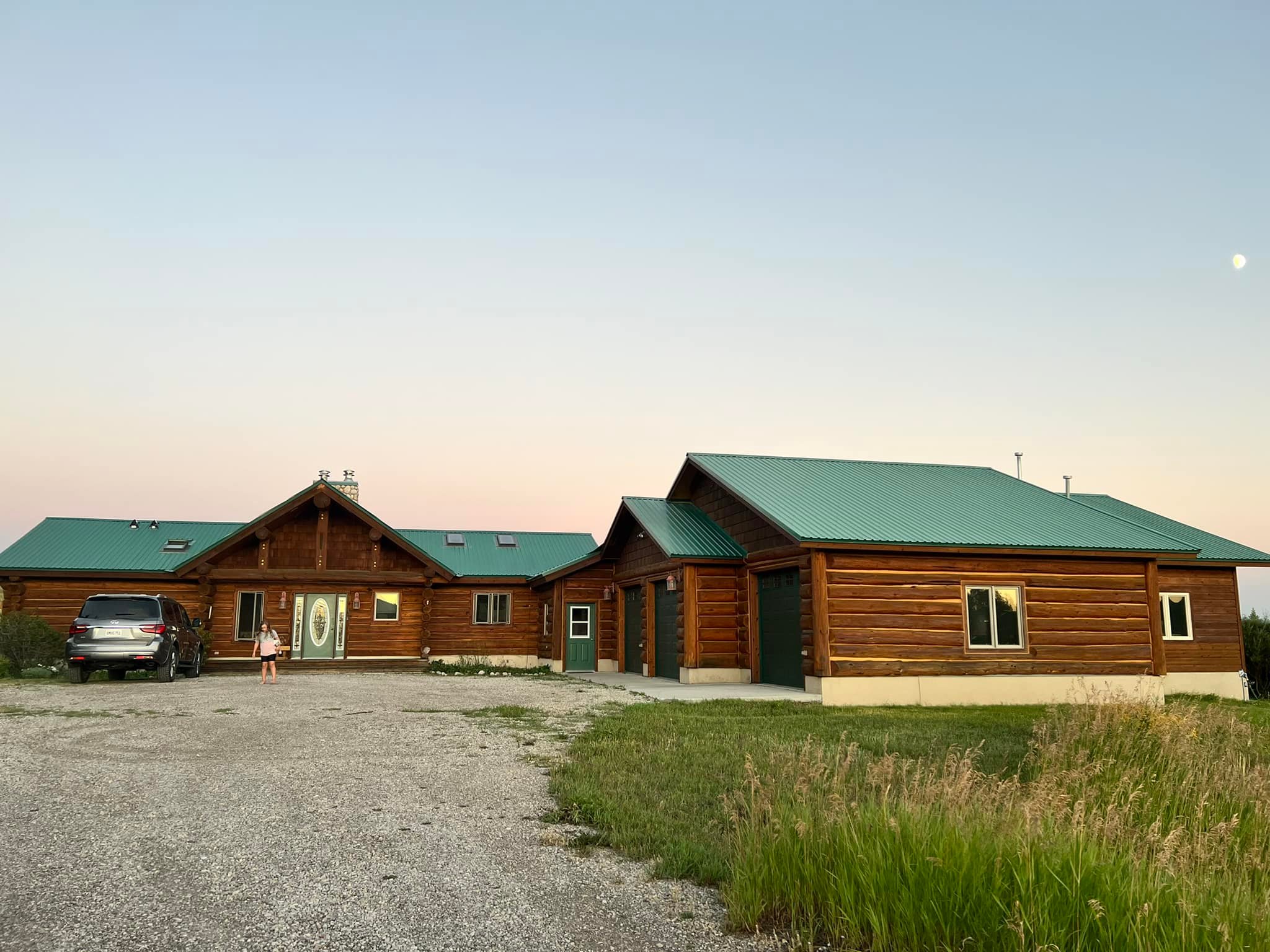 I don’t know how to summarize the beauty of this part of the U.S. Flying into Bozeman, MT’s airport is one of the most beautiful arrivals I’ve ever seen. It’s also the cutest, friendliest airport I’ve ever been to. We knew this was going to be a trip with a lot of time spent in the car so we splurged on a few things – a large and comfortable SUV that fit all six of us, and a cool log cabin style house that had plenty of room for three teenagers and an 8-year old.