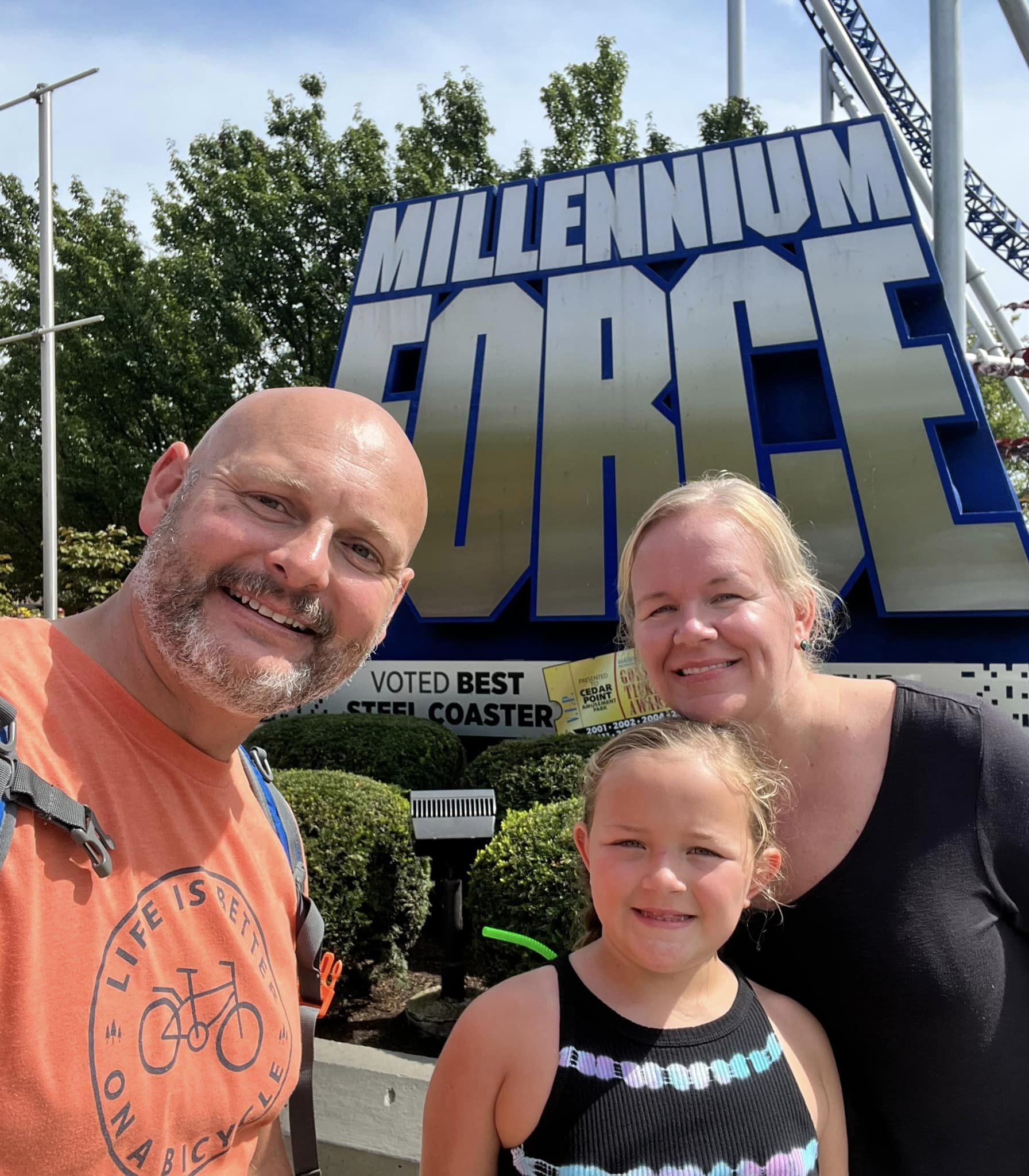 The goal of Day One in Cedar Point was to ride as many roller coasters from the park’s opening until it closed. We conquered eight of the craziest, most intense rollercoasters I’ve ever been on! Millennium Force stands 310 feet high and screams along at 93 miles per hour over more than a mile of track. It’s considered a giga-coaster, or a coaster that climbs skyscraper-like hills and then dives toward the ground at a high rate of speed. I am surprised that I am living to tell about it.