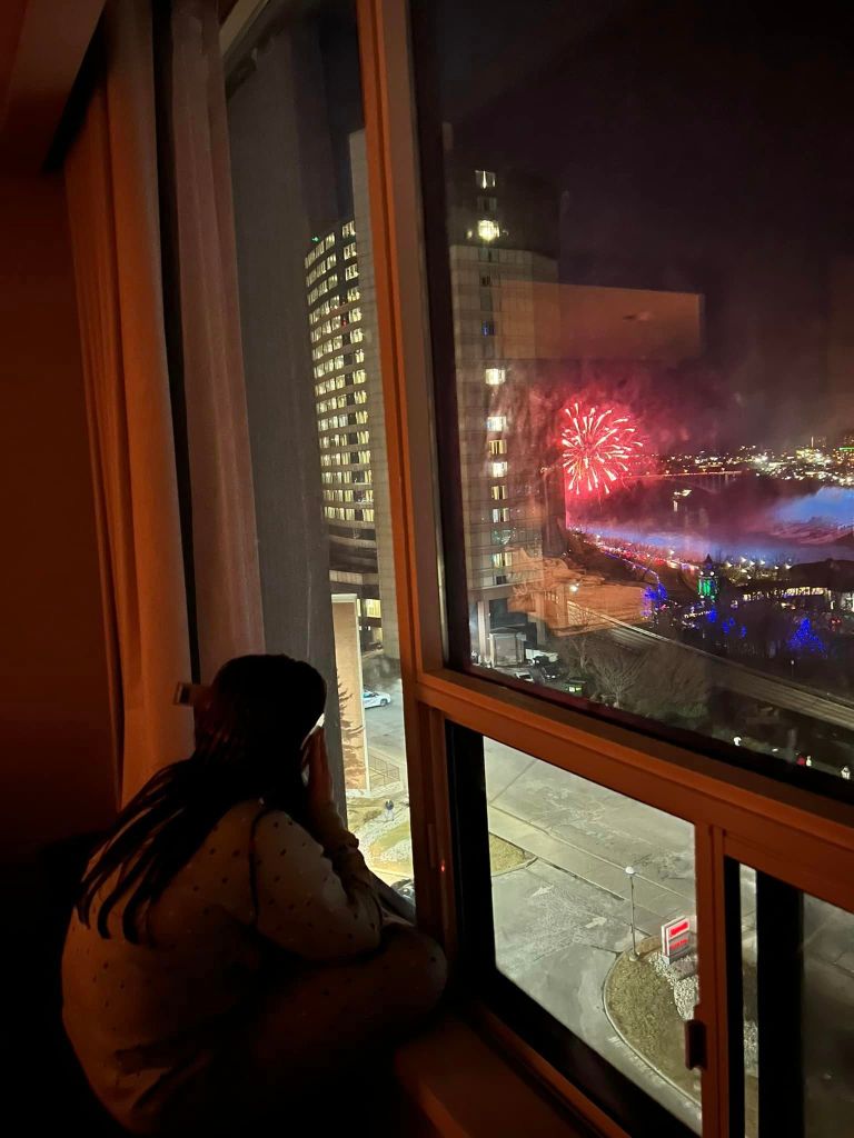 Niagara Falls, ON is about a 6-1/2 hour drive from Frederick County, MD. The trek is very rural at times and we drove through some light snow the further we got in NY, as to be expected during the month of January. We left right after school on a Friday and checked into our hotel Marriott by the Falls in Ontario. It is a nice hotel and I highly recommend paying a little extra for a view of the falls because fireworks are a regular weekend event which you can view without having to leave your room.