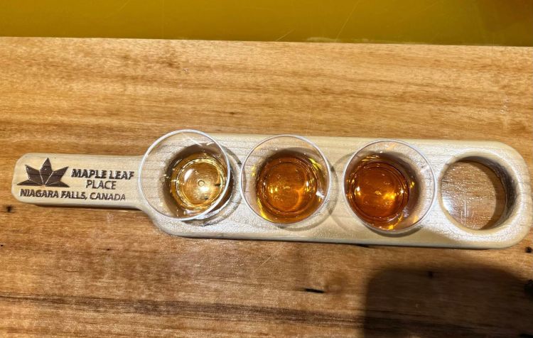 Yes, a maple syrup tasting is a real thing at the Maple Leaf Factory! My only regret is not buying more syrup to bring back home. My kids loved being able to sample different types of maple syrup! They also sell gifts and homemade fudge, and have some fun photo backdrops.