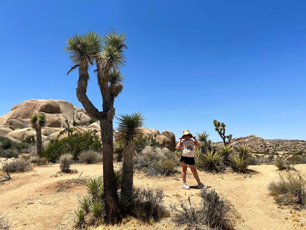 I was not expecting to see massive boulders like Skull Rock which seemed to defy gravity, creating a playground for climbers and explorers alike. We marveled at the unique Joshua Trees, their twisted branches reaching for the endless blue sky, and made our way out at the Cholla Cactus Garden (it’s a bit of a drive through the park but worth it) and found that if you walk by too closely, the cactuses will leave an imprint on your clothes!