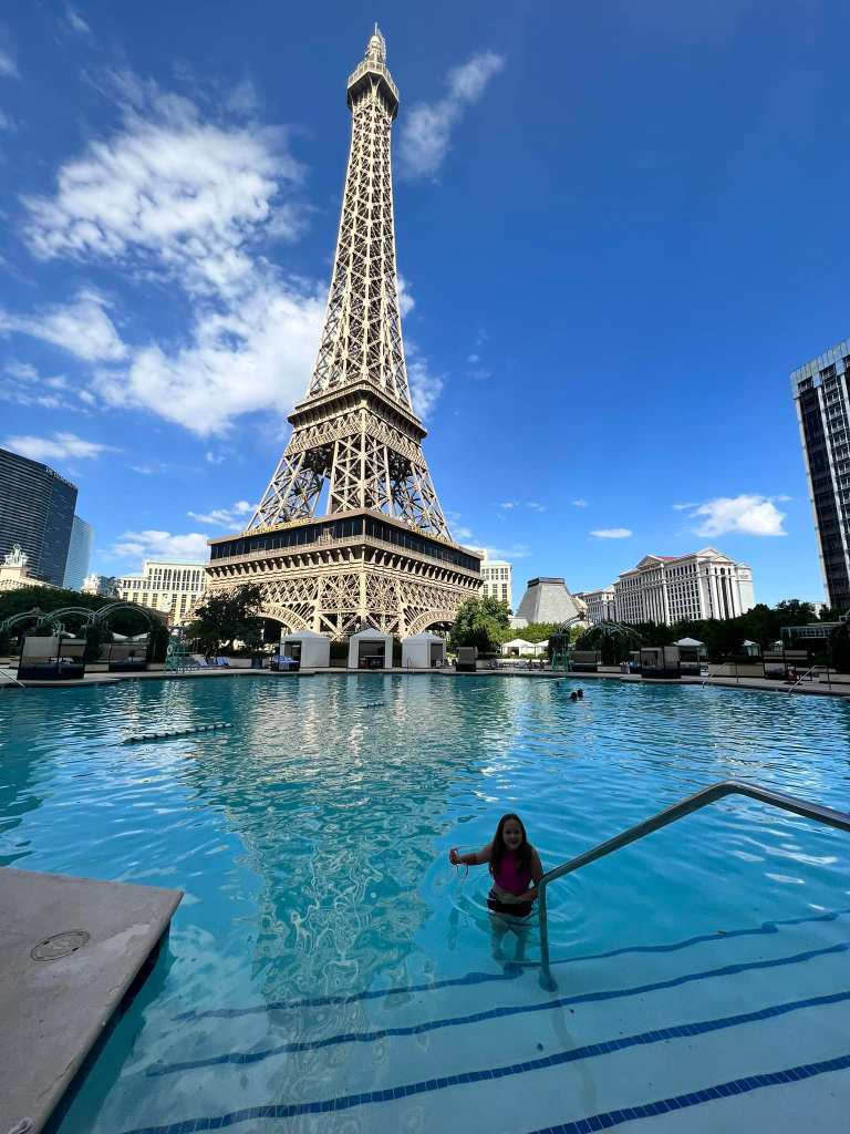 Finding a family-friendly accommodation near Caesar’s Palace where we’d later planned to see Garth Brooks was the first planning item of this desert trip. We chose the Paris Hotel for its replica of the Eiffel Tower, fantastic swimming pool and themed rooms, ensuring that my daughters would be as dazzled by the hotel as they were exploring the city. The Paris has a great crepe place for breakfast and a beautiful restaurant by Martha Stewart called The Bedford. Make reservations early!